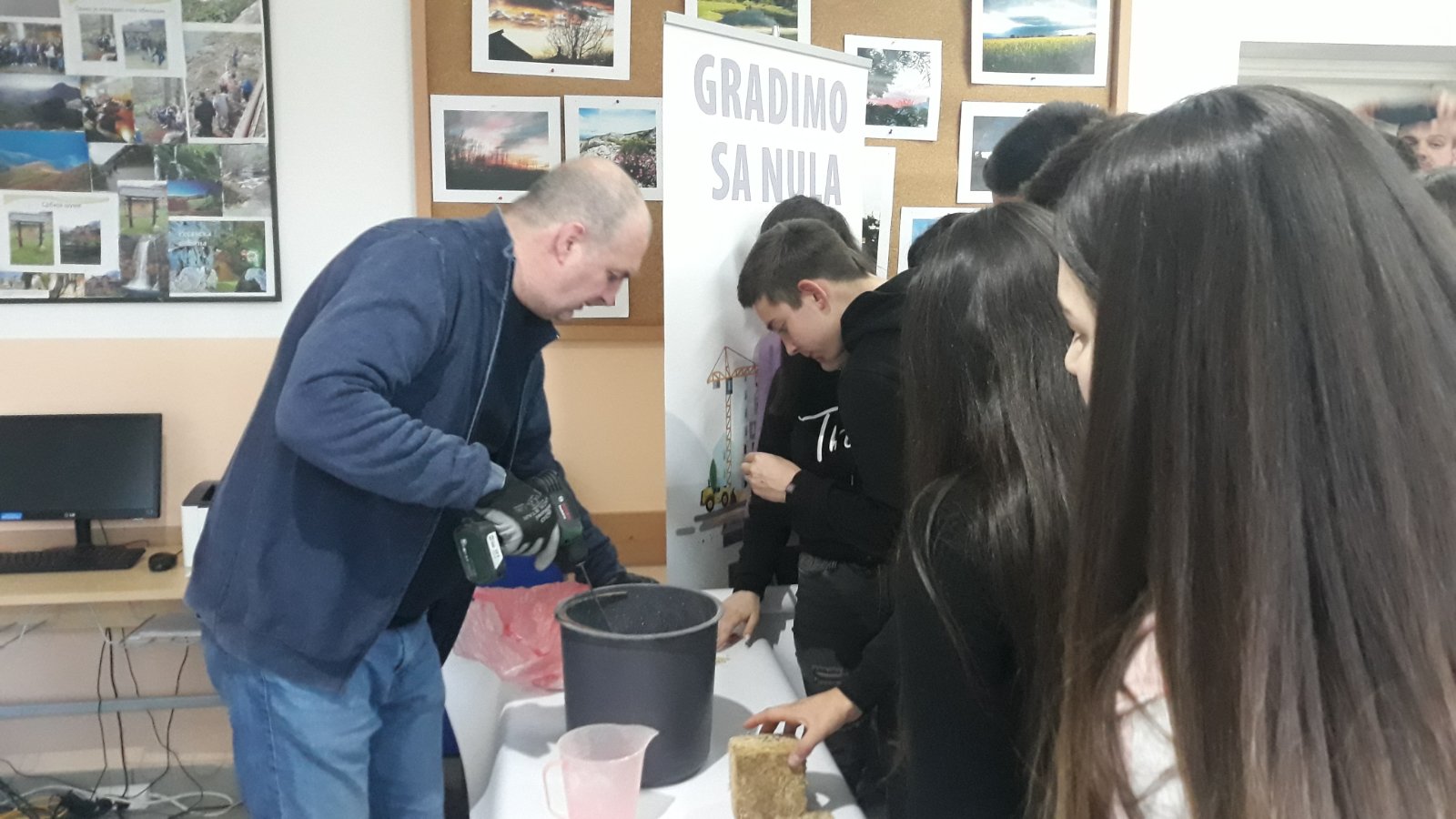 U okviru projekta „Gradimo sa manje CO2“ koji realizuje UNEKOOP uzpodršku Ministarstva zaštite životne sredine realizovana je demonstraciona radionica na kojoj je prezentovana tehnologija izrade lakih niskokarbonskih betona (BioBeton).Reč je o proizvodu koji već nekoliko godina UNEKOOP razvija sa Fakultetom za primenjenu ekologiju „FUTURA“.Reč je o nekonstruktivnom betonu na bazi sekanaca biljke Miskantus i hidrauličnog kreča, koji ima izuzetno povoljan karbonski otisak.Bila je ovo prilika da učenici Tehnološke škole koji se školuju za smer tehničar zaštite životne sredine steknu praktična znanja o dekarbonizaciji građevinskog sektora.