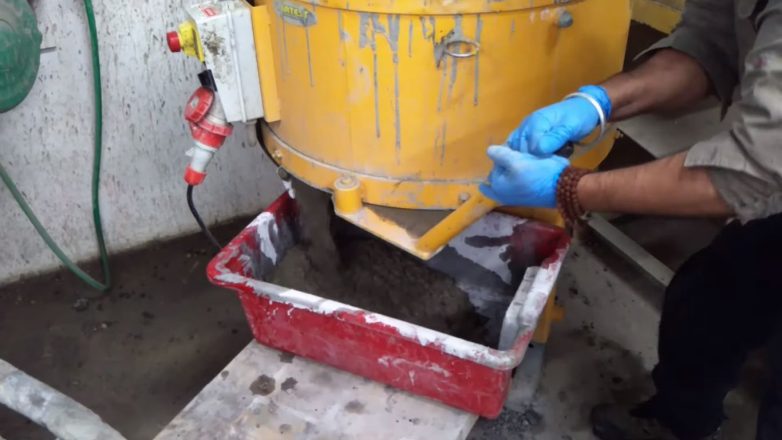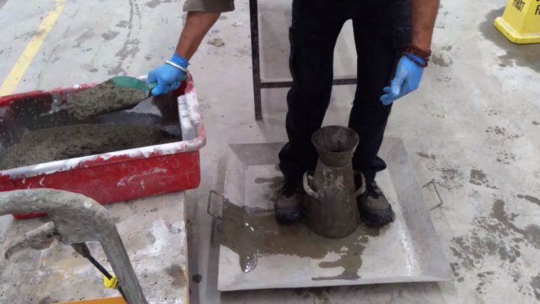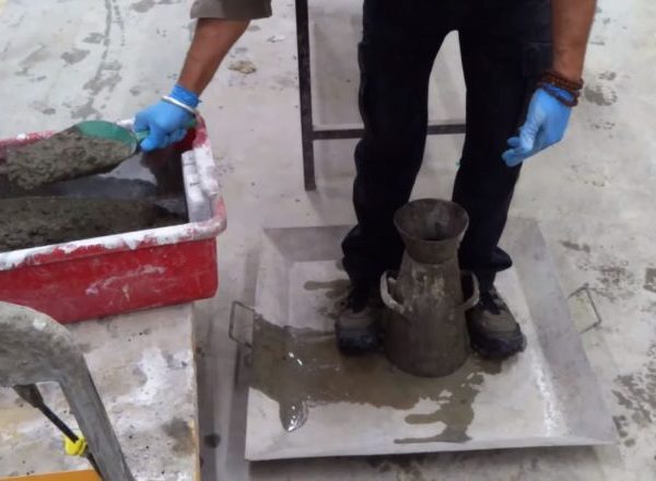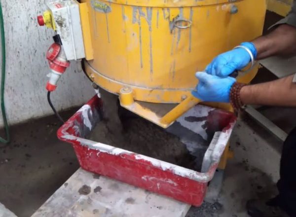 Svež beton je sipan u kalupe, a zatim postavljen na vibriranje kako bi se uklonio višak vazduha iz smese. Beton je zatim sušen na sobnoj temperaturi naredna 24 sata, a zatim izvađen i testiran na čvrstoću i pritisak i analiziran korišćenjem rendgenske difrakcije i skenirajuće elektronske mikroskopije.